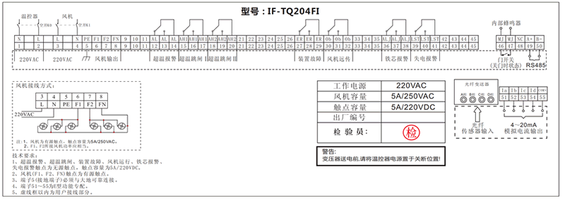IFTQ-204FI軌道交通變壓器光纖溫控器端子接線圖(附加功能請(qǐng)來電咨詢)